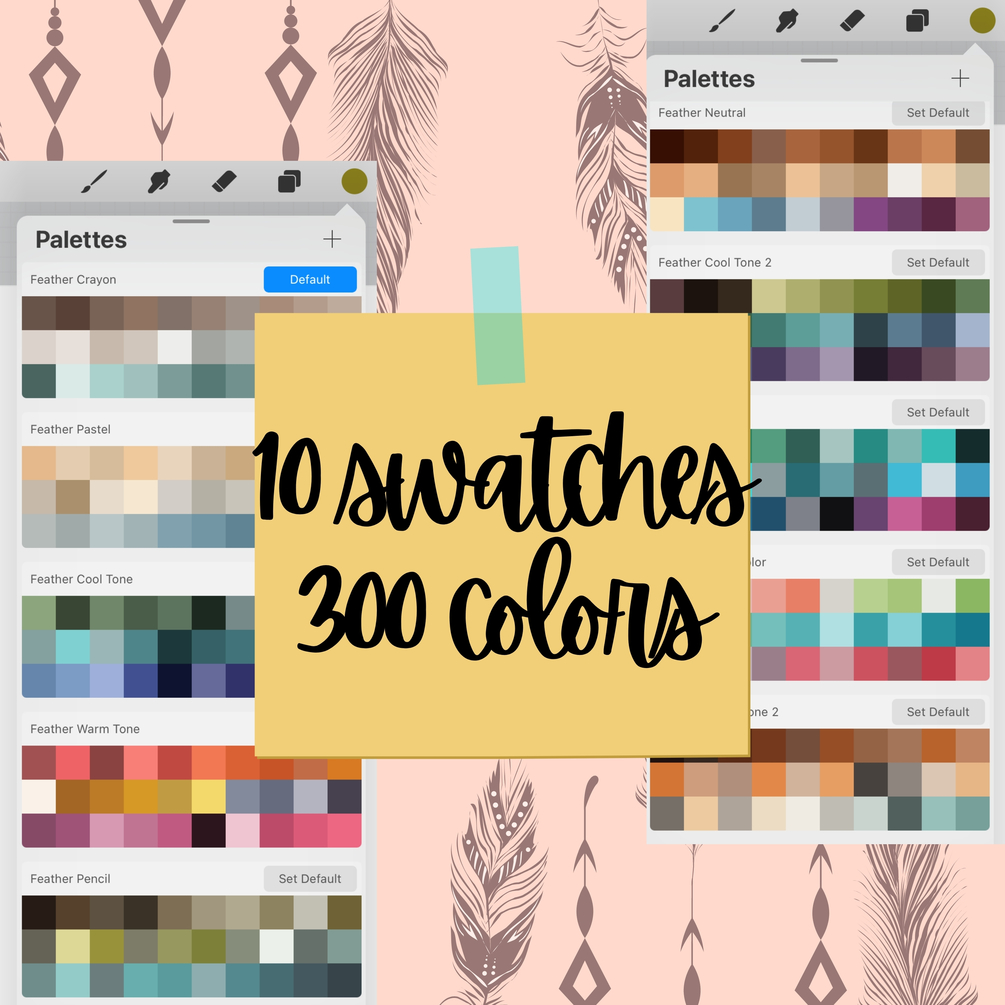 407 Feather Procreate Bundle. 20 Feather Sketch Procreate Brushes, 87 Watercolor Feather Procreate Stamp, 300 Procreate Color Palette Swatch